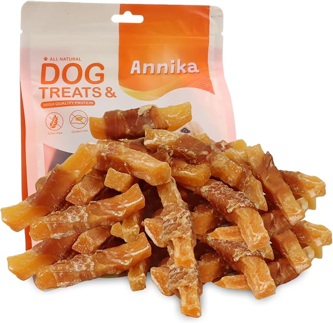 Annika Dog Treats 鸡肉包裹鳕鱼棒 – 天然单一成分鳕鱼狗零食和鸡肉干 – 适合小型、中型和大型犬的持久鱼咀嚼,11.5 盎司