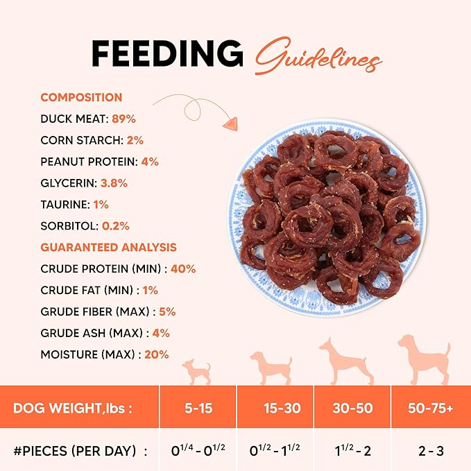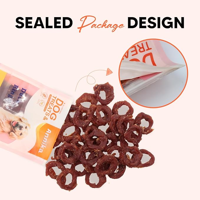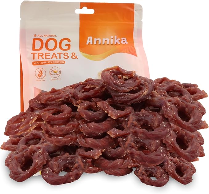 Annika Duck Jerky Rings – High Protein Natural Duck Chews with Taurine, Rawhide-Free Soft & Chewy Training Snacks for Small to Large Dogs, 11.60 oz